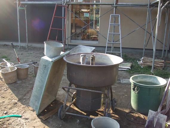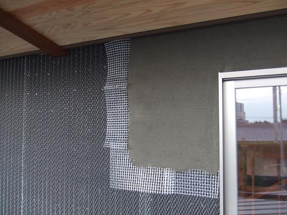 外壁の金網の上にセメント?