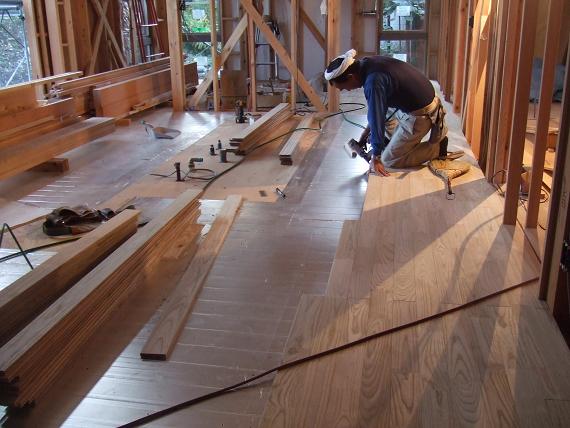 リビングの床張りが始まりました。