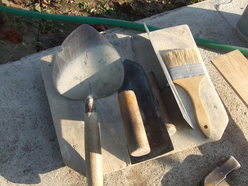 平らに塗ってから、たわしの様な物で擦り落とる方法でした。