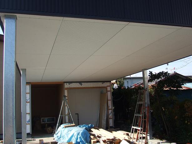 車庫の天井(不燃ボード)が貼られました。